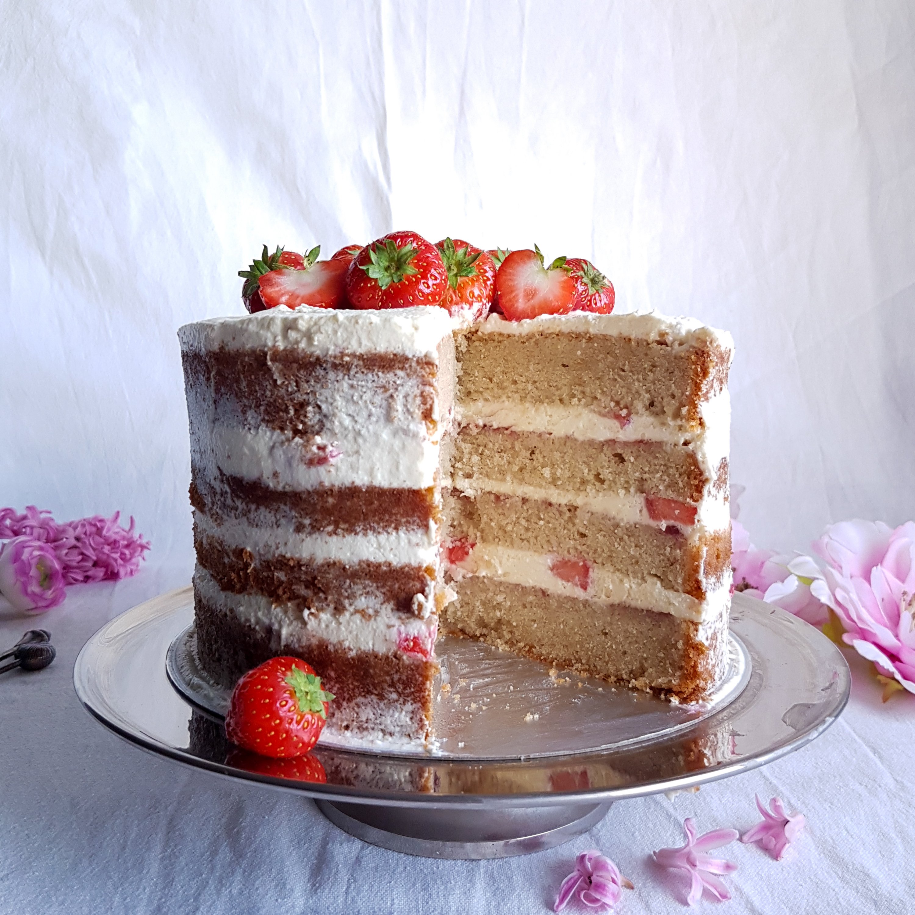 vanilla cake, strawberries white chocolate