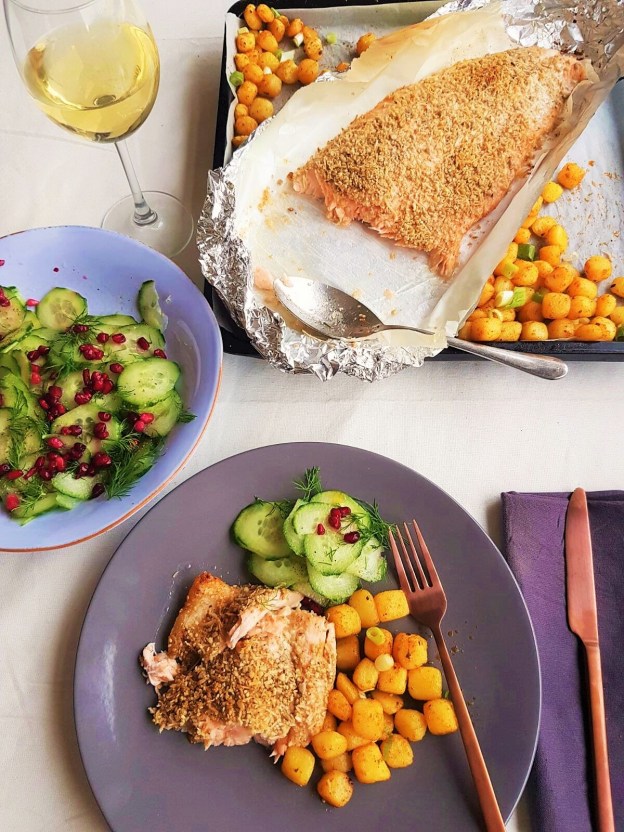 Make the Yoghurt dip by simply mixing the ingredients, place in a bowl until ready to serve. Sprinkle with some pomegranate seeds if you like.